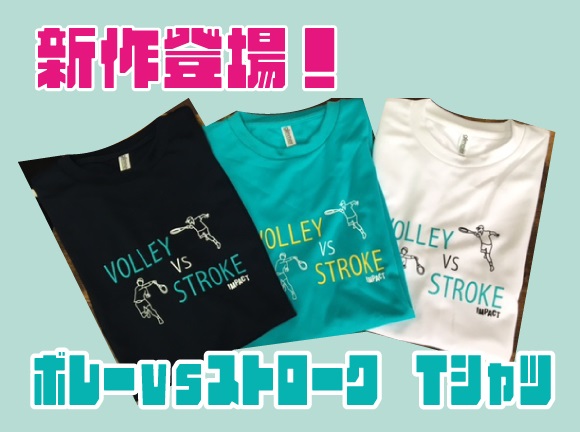 こんにちわ!IMPACT 新作でましたボレーVSストロークTシャツ です!ボレスト好きなあなた ボレー超得意なあなた やっぱストローク大好きなあなたへ配色もキレイですよ!