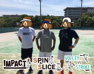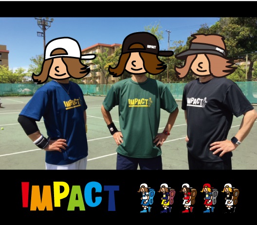 こんにちは またまた今日もIMPACTをお買い上げいただいた方々とテニスしてきましたよ~新作のスピンスライスTシャツ着て 頑張ってきました気持ちのいい気候でした!
