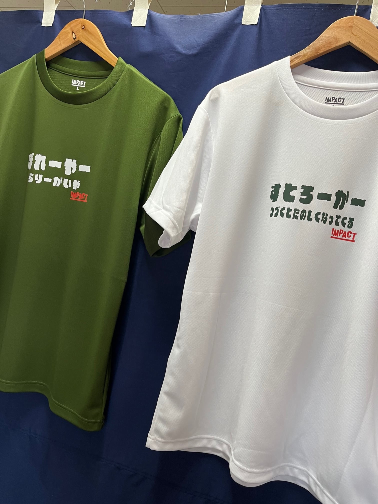 色はオリーブ バックプリントにIMPACTロゴ(赤)あり